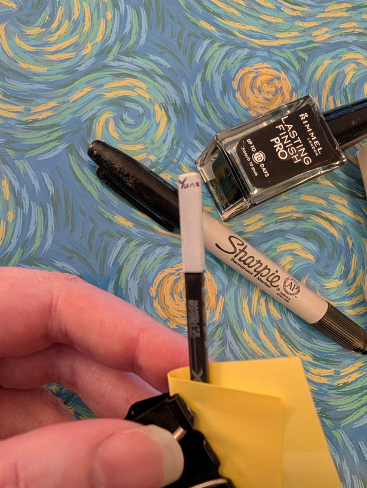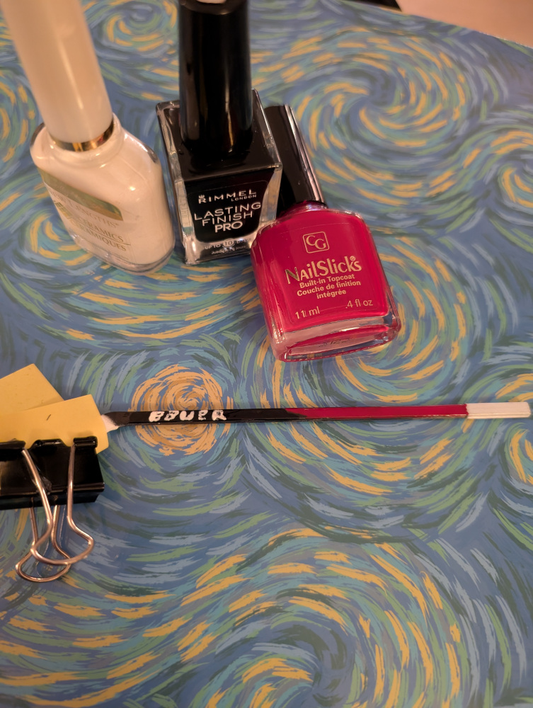 Note that I used nail polish for my painting because I don’t have paint and it didn’t occur to me to ask my sister if she had the colours I needed.