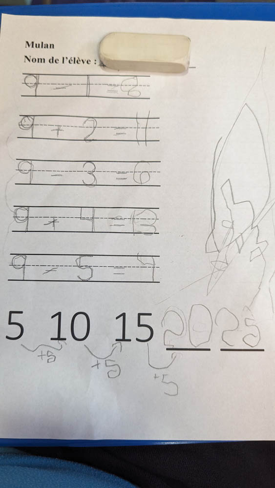 He wrote some numbers backward, but changed them when I pointed that out to him.