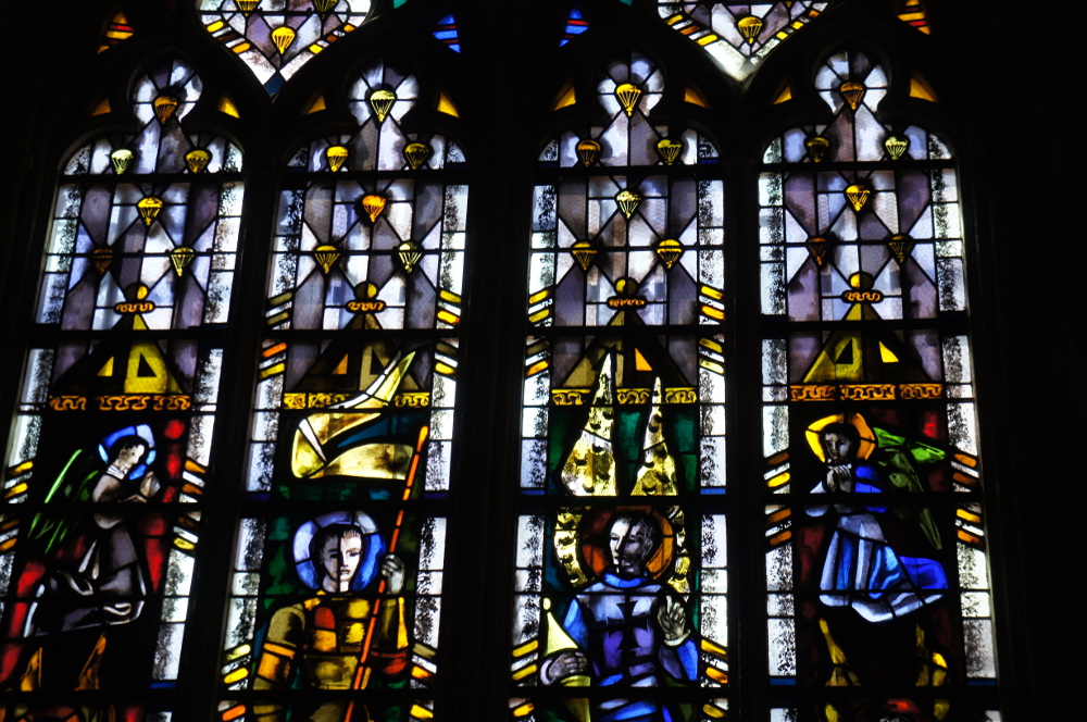 Carentan is a small town (all roads lead to Carentan) that was a strategic location in the war, because of the roads, and was liberated by the 101st Airborne, a fact that is still celebrated today. Notre-Dame de Carentan Church started being built in the 11th Century, the stained glass windows that got blown out during the war were replaced with some of the original designs, but some had added homages to the soldiers that liberated them, with depictions of paratroopers and saints holding the Screaming Eagle crest (the 101st Airborne’s crest). They also have a war memorial from the First World War, which is now dedicated to both wars.