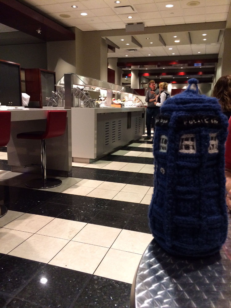 The TARDIS is off on a trip! Here it is in the Air Canada Lounge in Ottawa’s airport. Where is it headed? Take a guess and stay tuned next Monday for the next picture in this series!