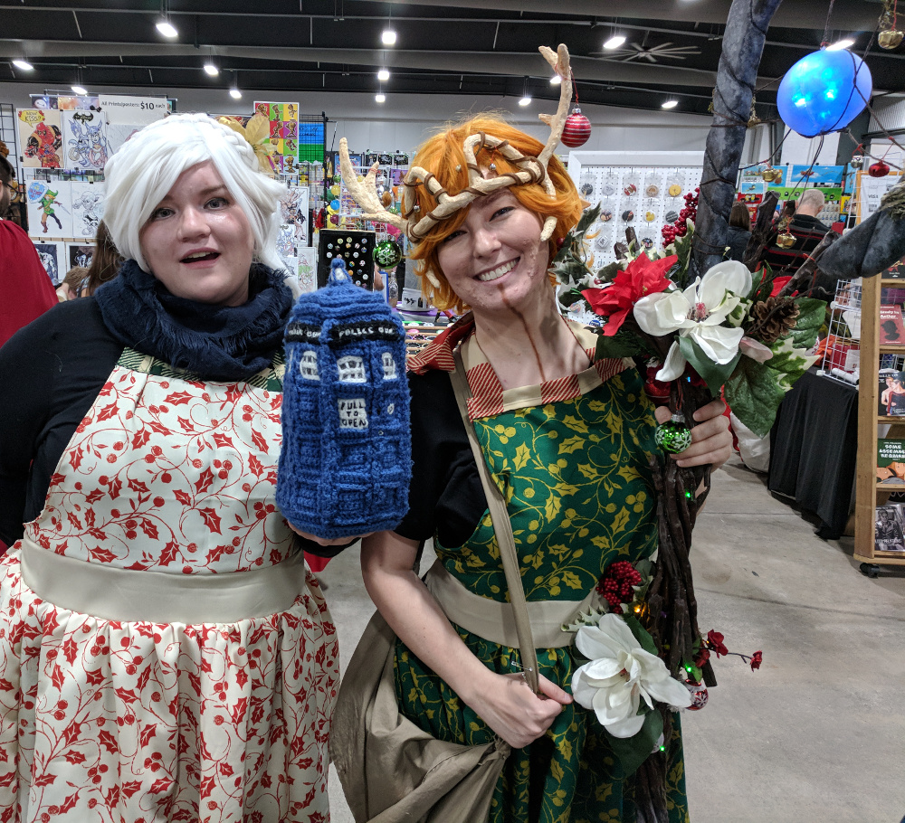 Wow! I originally wanted to say that this is Mrs Claus and a reindeer, but now that I look more closely at the costumes, I’m not sure that I’m right! Look at the intricacies of that staff!? Any ideas?