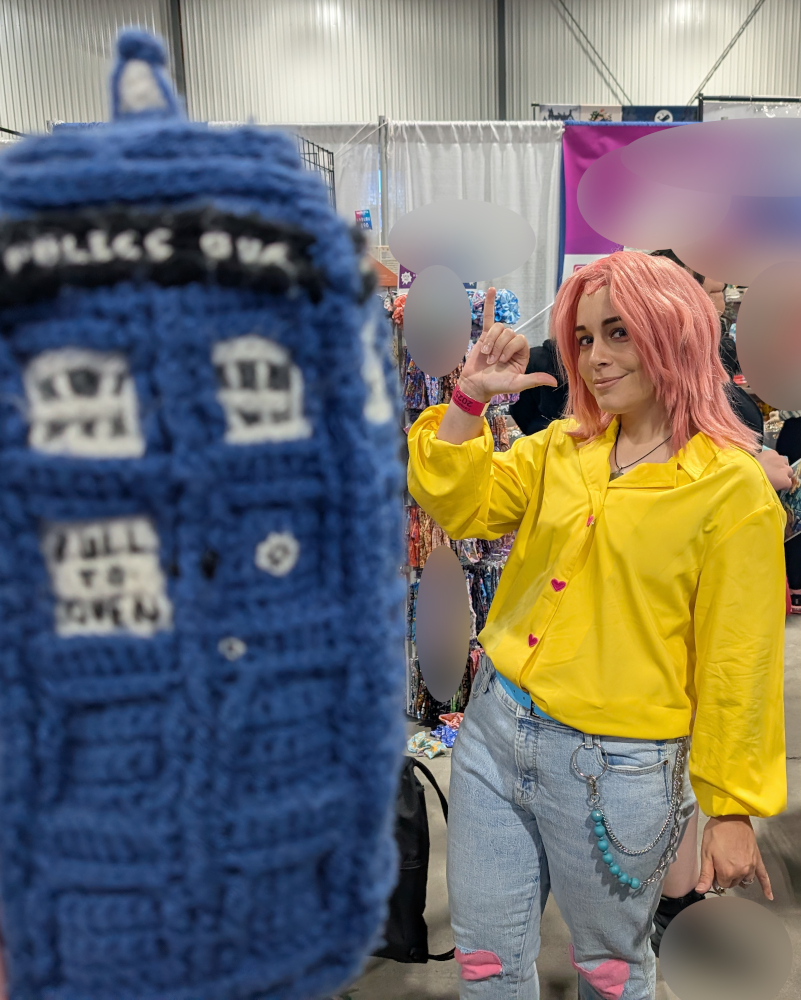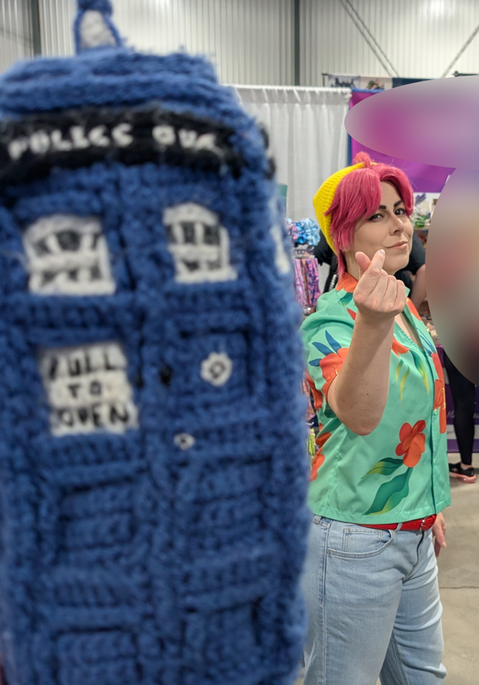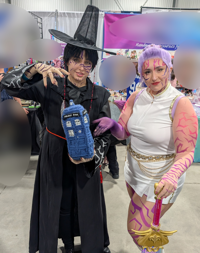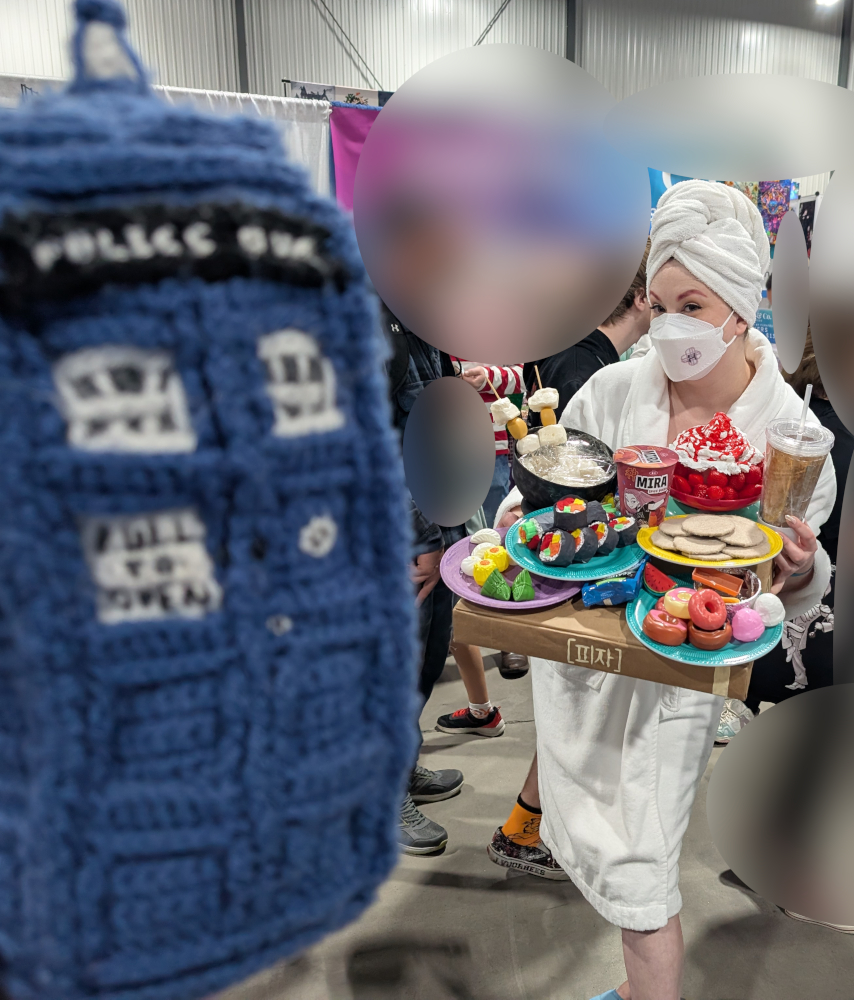 KPop Demon Hunter cosplays were the ones I was looking forward to seeing the most this weekend, and I wasn’t disappointed! I wasn’t able to grab a Bobby cosplayer, much to my disappointment, or a Baby Saja, but I got the rest of the main characters, starting with the awesome @princessofthenorth as Mira ready for the “couch couch couch!” And yes, she made all those delicious treats from scratch. No, you may not eat them, they’re not actually food!