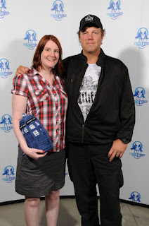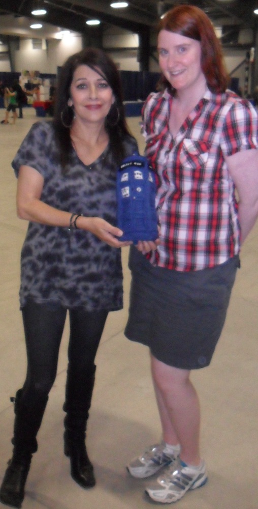 I am SUPER excited about this picture, because it was unplanned and accidental and it has Marina Sirtis holding the TARDIS! She is so awesome.