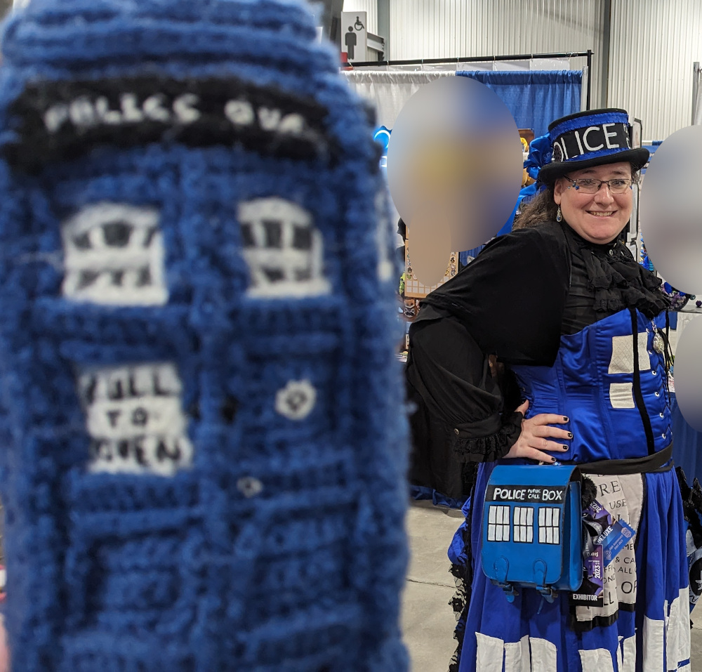 TARDIS-ception January 17, 2024 by Jen Desmarais I loved this cosplay, from the hat to the purse to the corset and skirt. I didn’t allow contact with the TARDIS… who knows what might happen!? Sharing is awesome! Share Pin LinkedIn Email