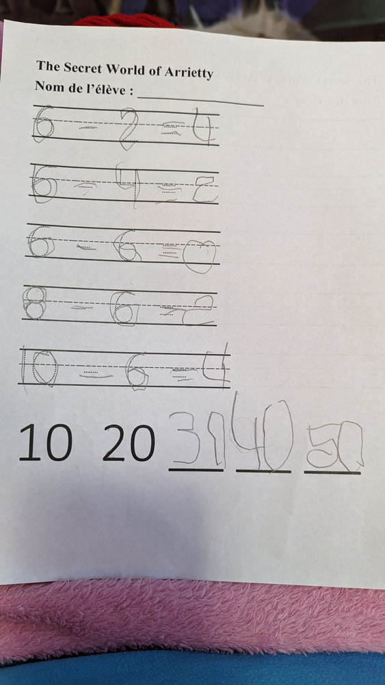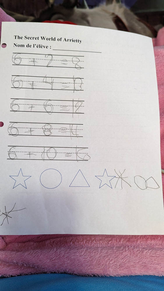 Math worksheets. He did them both on Monday morning because he was so excited to do them once again. He didn’t need my help at all, and when I pointed out that 6+6 wasn’t 11, he knew instantly that it was 12. Hence my frustration with the counting above.
