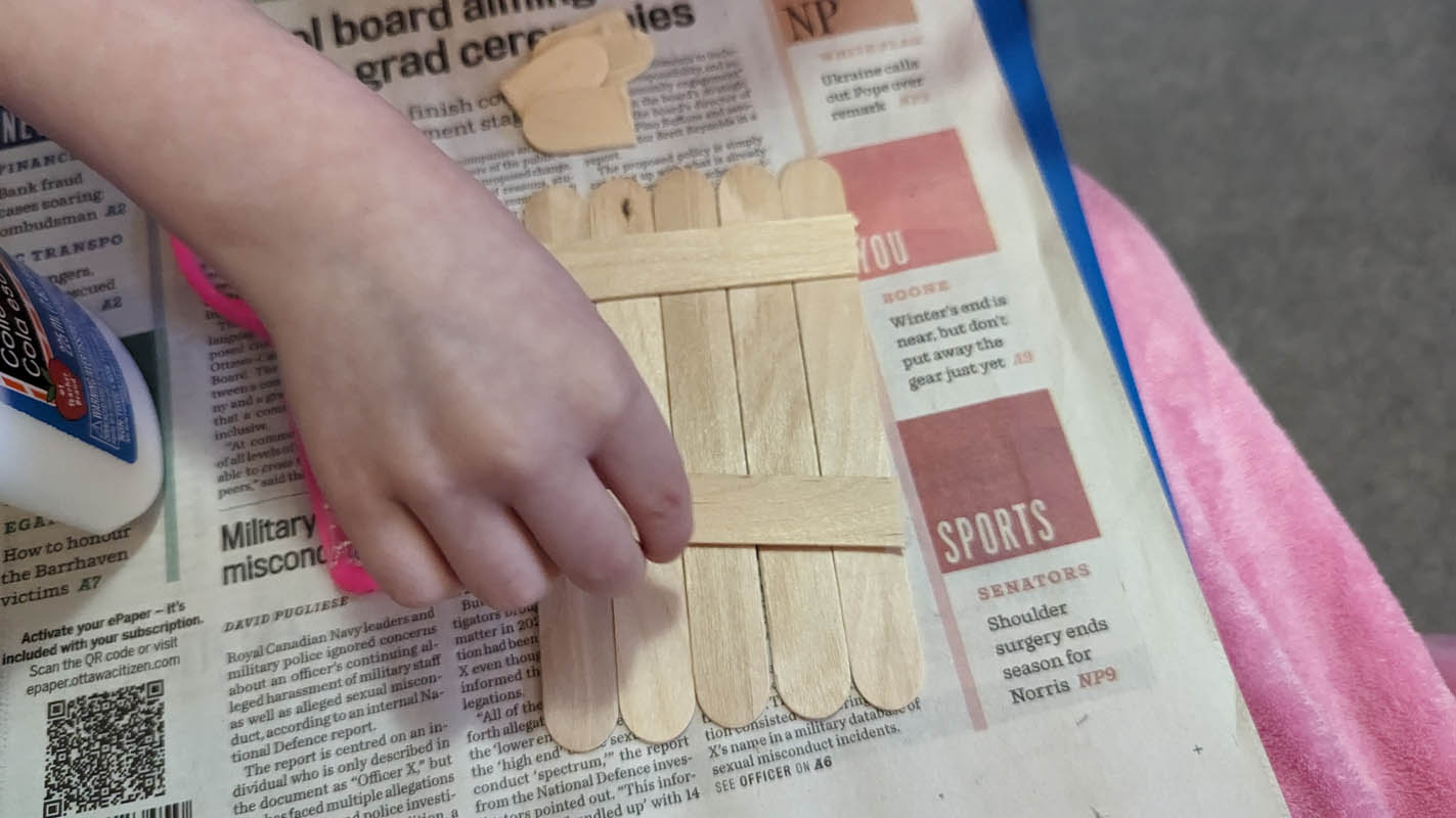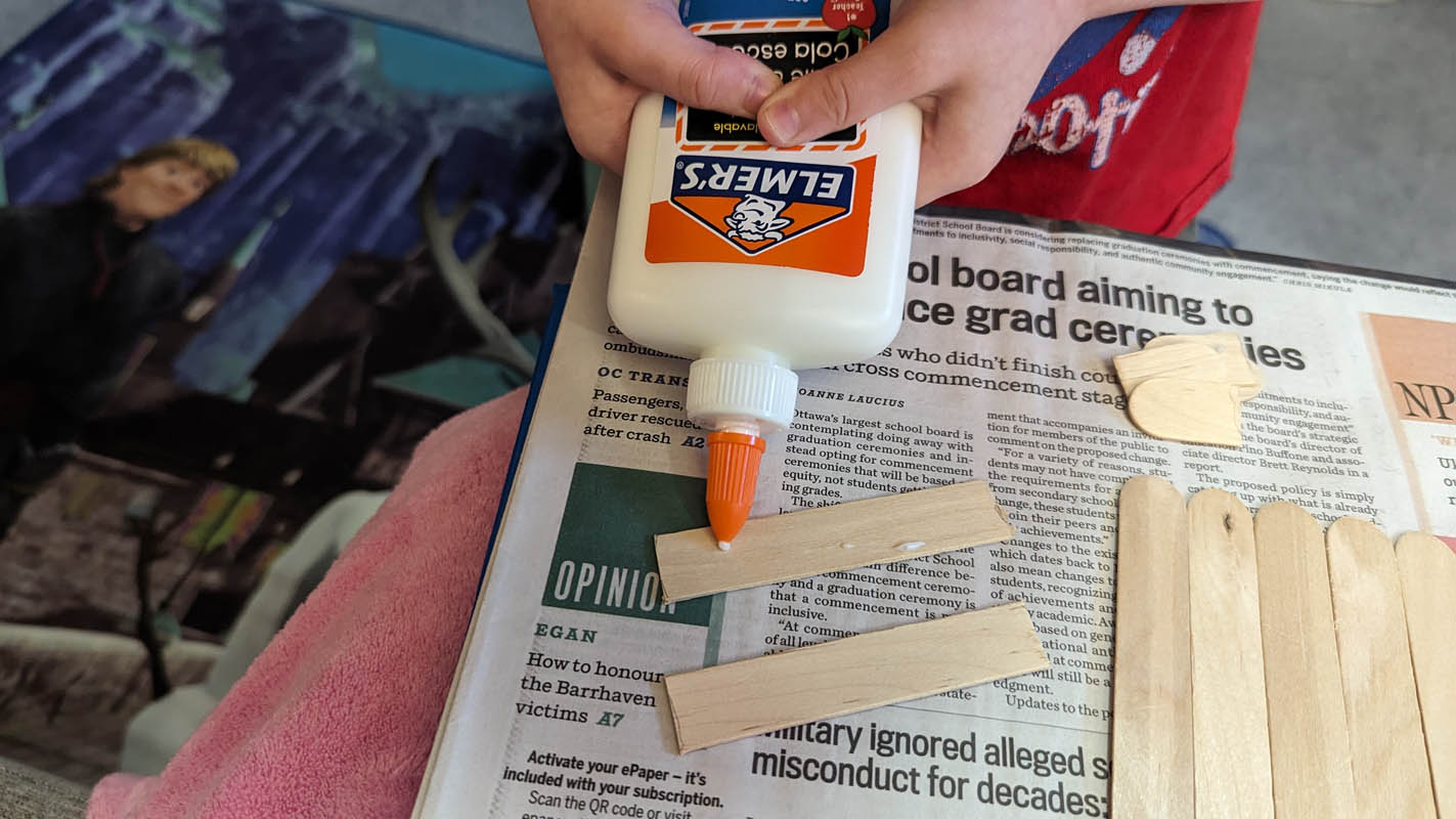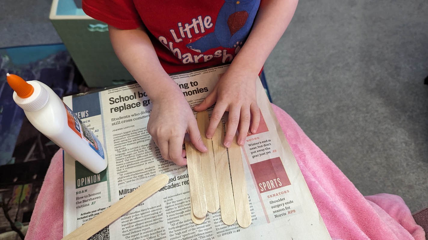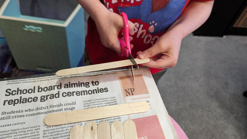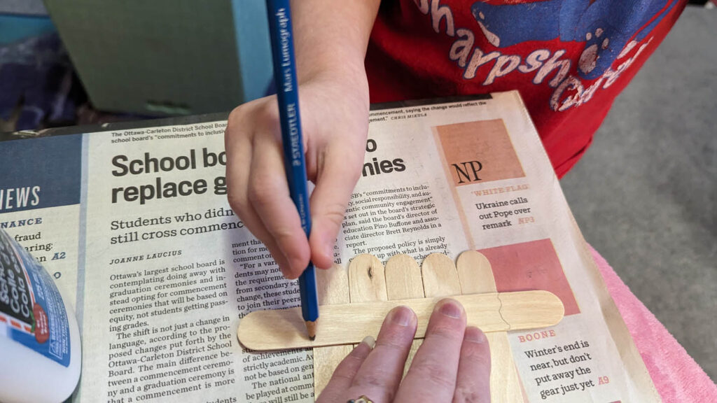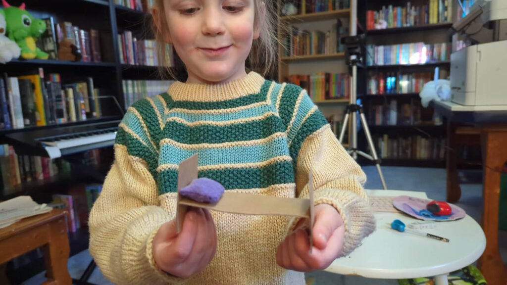 Make tiny furniture – I asked him which piece of furniture he wanted to build, and he decided on the bed, just like his sister. I had hoped that we could also make a miniature bookcase with some books, but I lost steam this week and we ended up not building that. He sewed most of the pillow himself (I did the hidden stitches after stuffing it.)