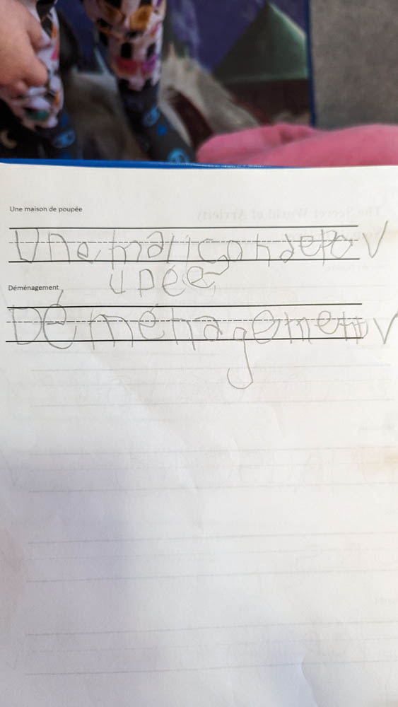 We’re working on spacing and keeping the words on the bottom line. He really doesn’t care about spacing.