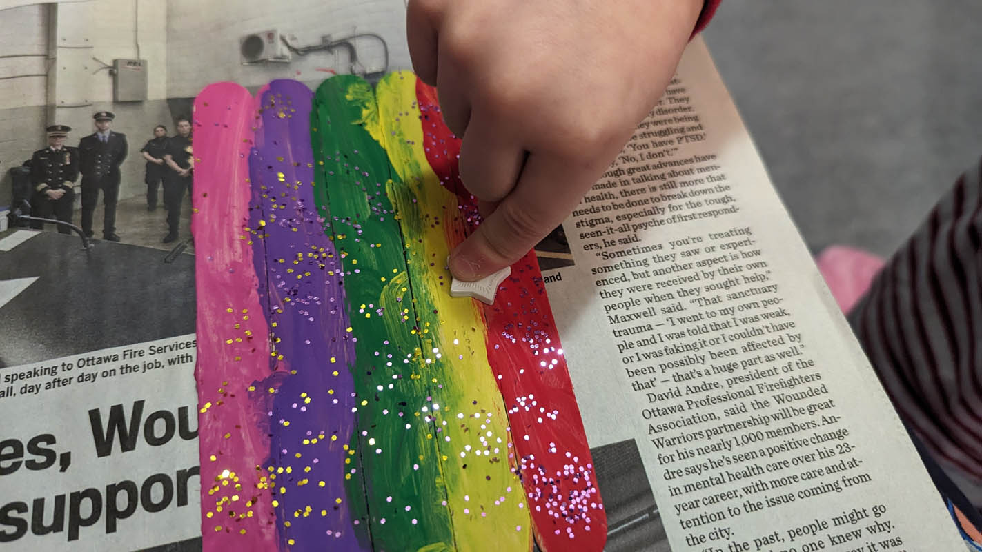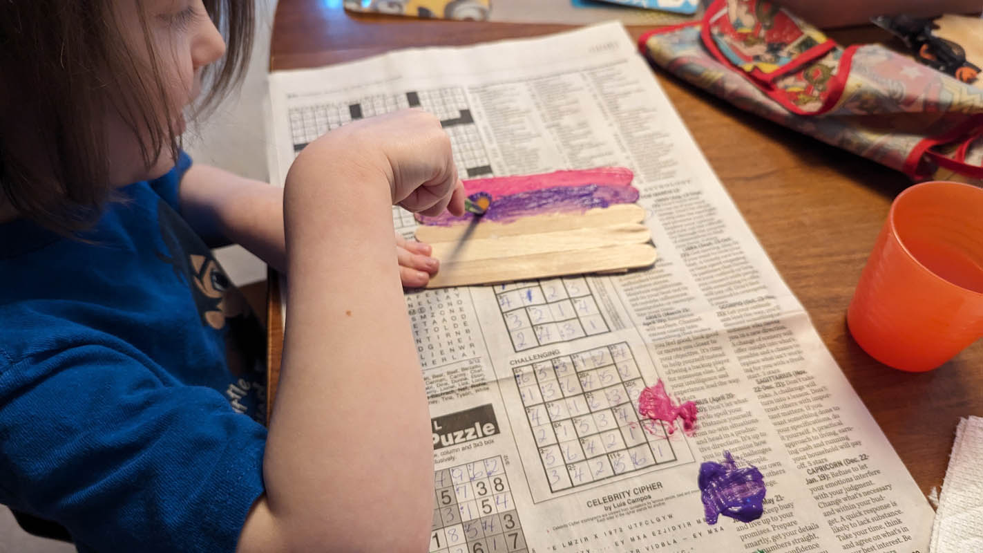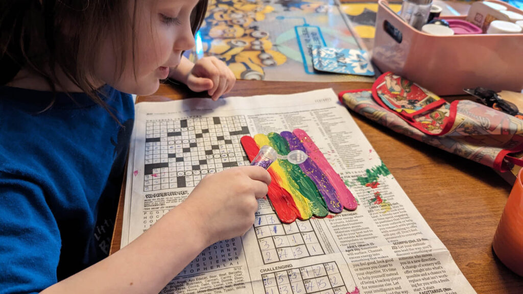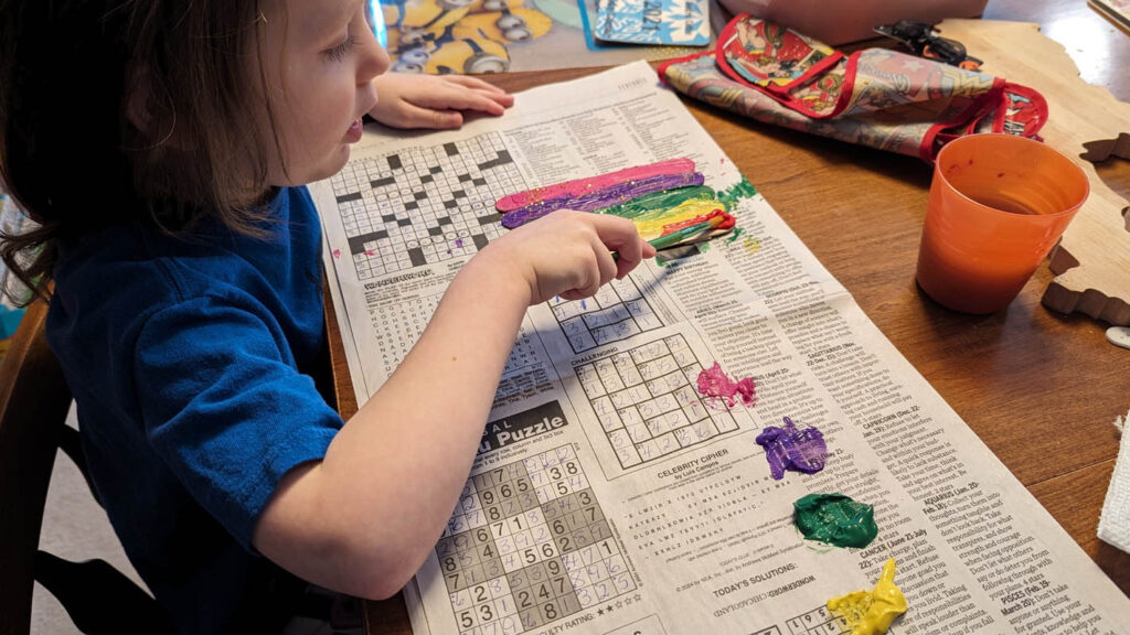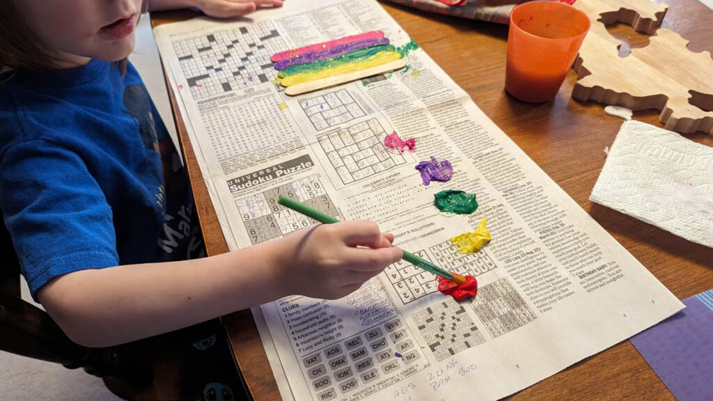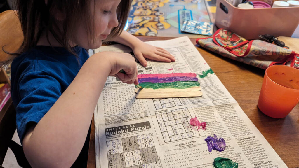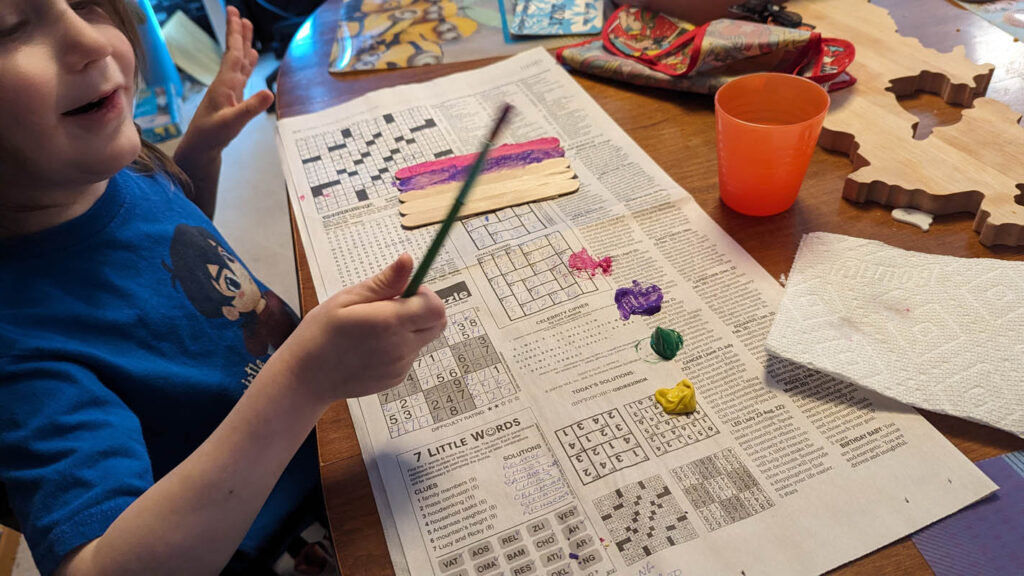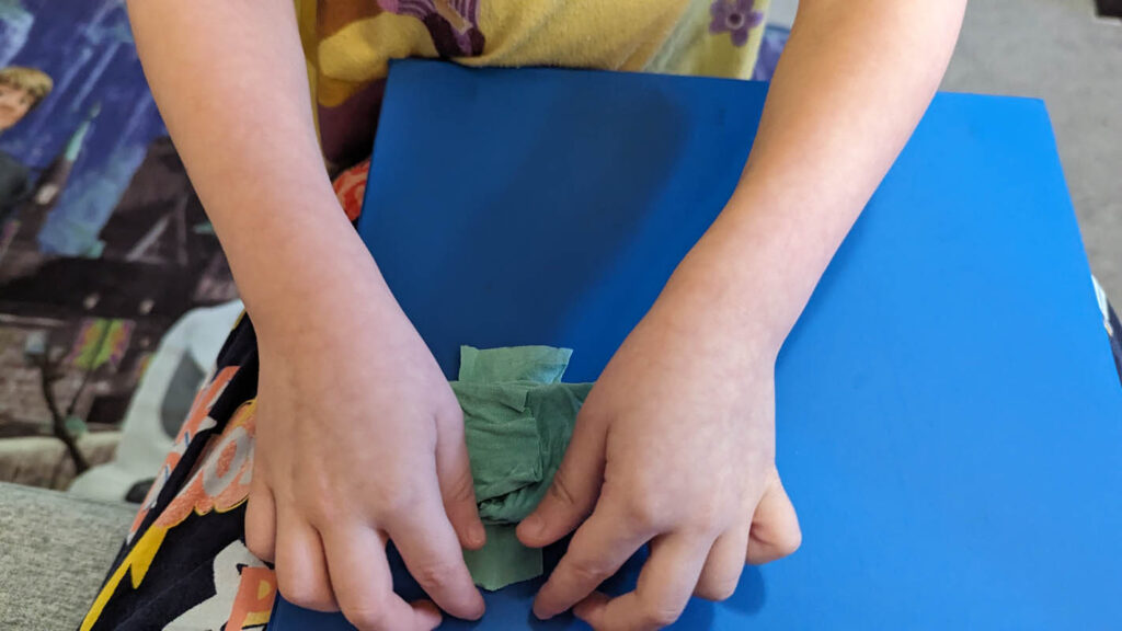 Make a fairy door – He was very enthusiastic about both making and painting his fairy door. He pointed out that the paint changed colours when they touched and was excited to see what each new colour would be.